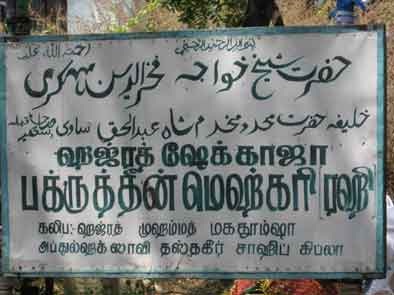 Dargah-e-Hazrath Dastaghir Saheb Baba (Rahmathullahi Alaihi), Located at 83, Dr. Natesan Road. Triplicane, Chennai 600 005